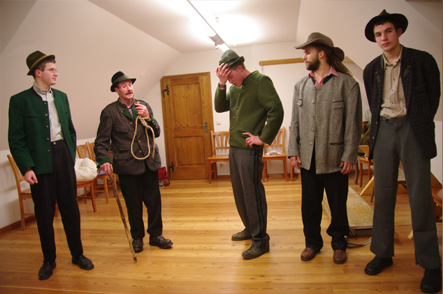 Wer kennt ihn nicht, Peter Roseggers "Sama Hiasl", der im "Regenschirm" die Unentschlossenheit selber darstellt. Um dieses Original geht es in drei Geschichten. Begonnen mit dem "Regenschirm", in dem er seine Frau der Wankelmütigkeit bezichtigt, geht es weiter mit einem längst vergessenen Silvesterbrauch um dann im dritten Stück völlig gruselig dem einfältigen Hiasl eins auszuwischen. Vier junge Burschen und der Sama Hiasl bereiten Ihnen sicher einen vergnüglichen Theaterabend.